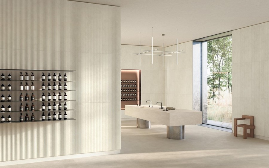 Коллекция охватывает как внутренние, так и наружные пространства. Она включает в себя новый ассортимент поверхностей Sensitech Outdoor толщиной 20 мм, доступный в четырех форматах, включая новинку — 80x80 см.
