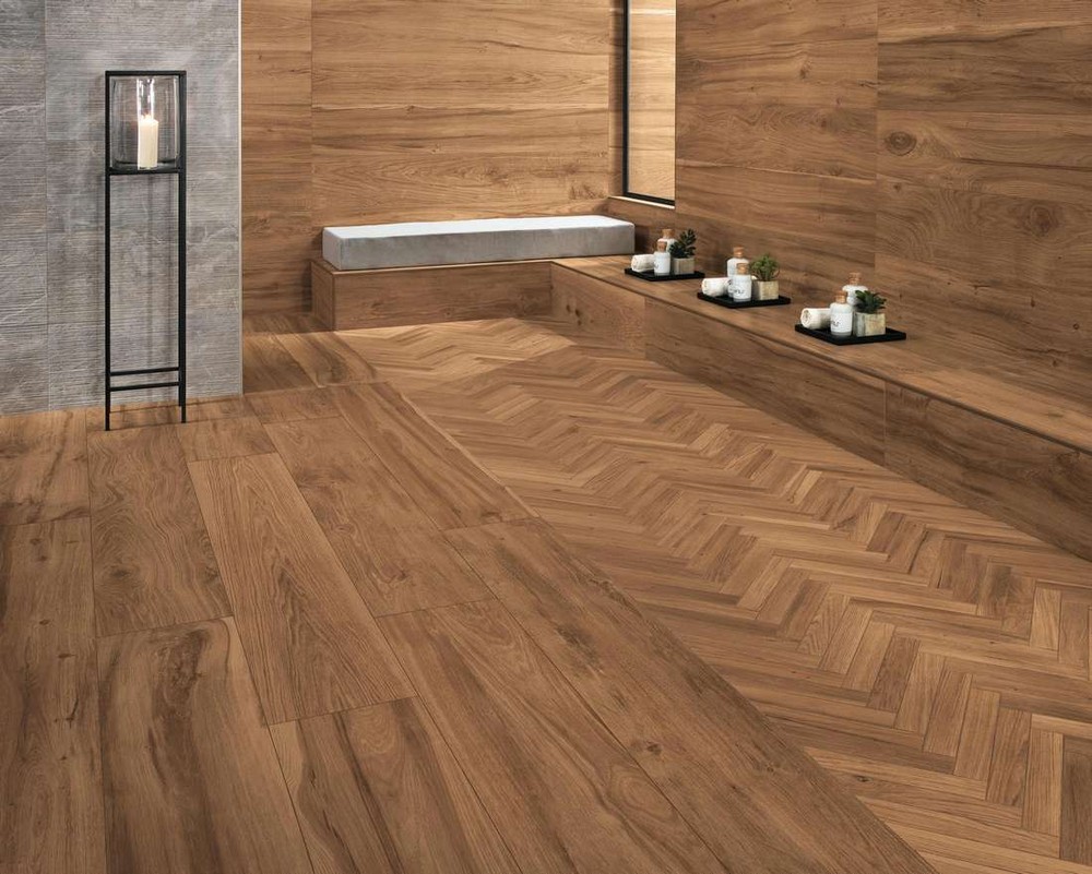 Роскошные оттенки и древесные узоры коллекции керамогранита Atlas Concorde Etic PRO (Атлас Конкорд Этик Про) произведут настоящий фурор в интерьерном дизайне. С помощью цифровых технологий художники компании воссоздали на облицовочной керамике уникальную текстуру дорогих пород дерева. Если вам нравится интерьер, оформленный деревом, то предлагаемый вариант окажется идеальным. Коллекция стильно смотрится в отделке квартиры, особняка, офиса, помещений гостиничного типа. Уникальные рисунки, складывающиеся из годовых колец, трещинок, срезов – все это придает керамограниту Etic PRO особенную прелесть. Производитель предложил широкую размерную линейку сразу с несколькими видами покрытия. Так, формат 22,5х90 см представлен в рельефном и частично полированном покрытии, 30х120 и 60х60 см – в том же решении, однако толщина плитка является усиленной и легко выдержит даже серьезные нагрузки. Наконец, размеры 15х90, 22,5х90, 25х150 см поданы в матовом покрытии, которое наиболее эффектно демонстрирует природный рисунок.